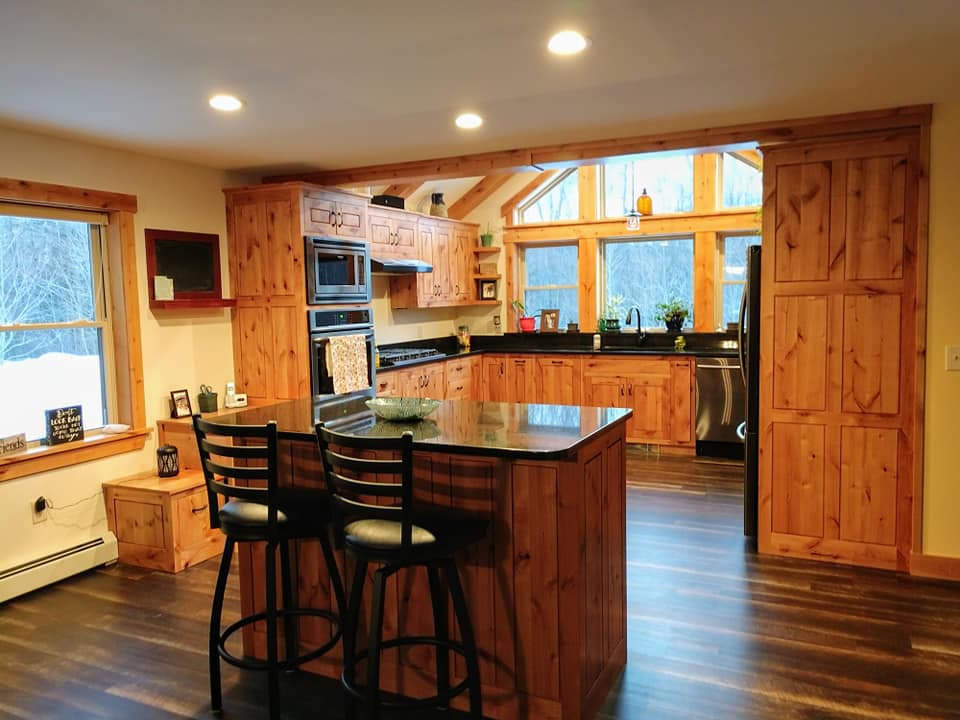 After rising from the ashes, Randy and his wife Deb, incorporated Vining’s Custom Cabinets in 2007. Their children, Kate and Seth, inherited Randy’s appreciation for quality wood products and fine workmanship. Over the years, the Vining family has built beautiful custom kitchens from a wide variety of woods, including curly maple, birdseye maple, flame birch, hickory, walnut, alder, and mahogany. They have installed their fine work all across Maine, from Cape Elizabeth to Rangeley. The crew also travels further abroad on occasion and has completed projects in New Jersey, Connecticut, Massachusetts, and New Hampshire.